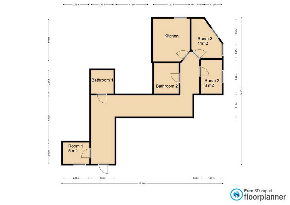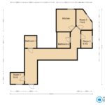 3 bedrooms, 1 private bathroom, 1 shared bathroom, kitchen /dining room)