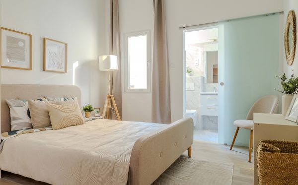 FLAT SIZE: 120 m2 ROOM 1 – OLIVE GREEN – 16 m2 -BOOKED double bed, bedside tables, wardrobe, study desk, chair, sheets, duvet, pillows